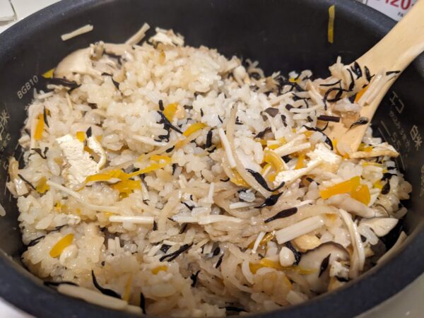 This takikomi rice is one of my favorite easy meals. All you have to do is chop the vegetables and let the rice cooker do the rest.