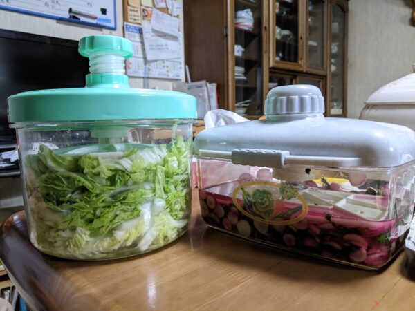 (5) Lightly squeeze the roots and combine with the leaves in a quick-pickle container.